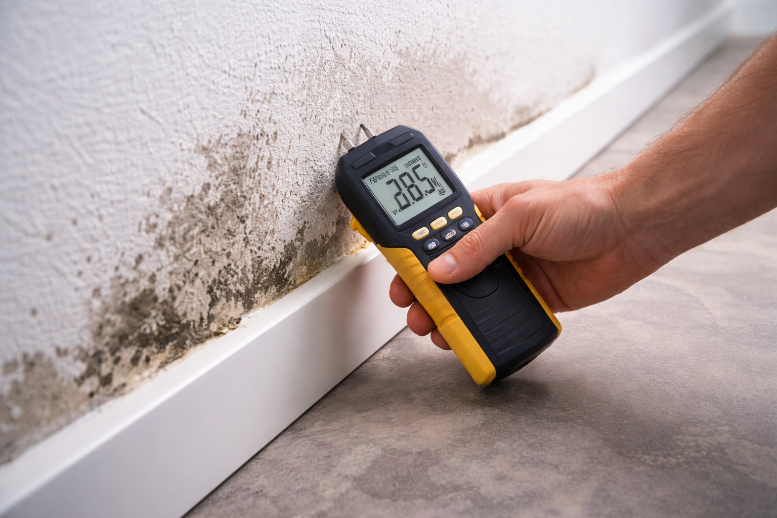 Messung von Feuchte in Wand, Boden und Decke zur Einschätzung von Durchfeuchtung.